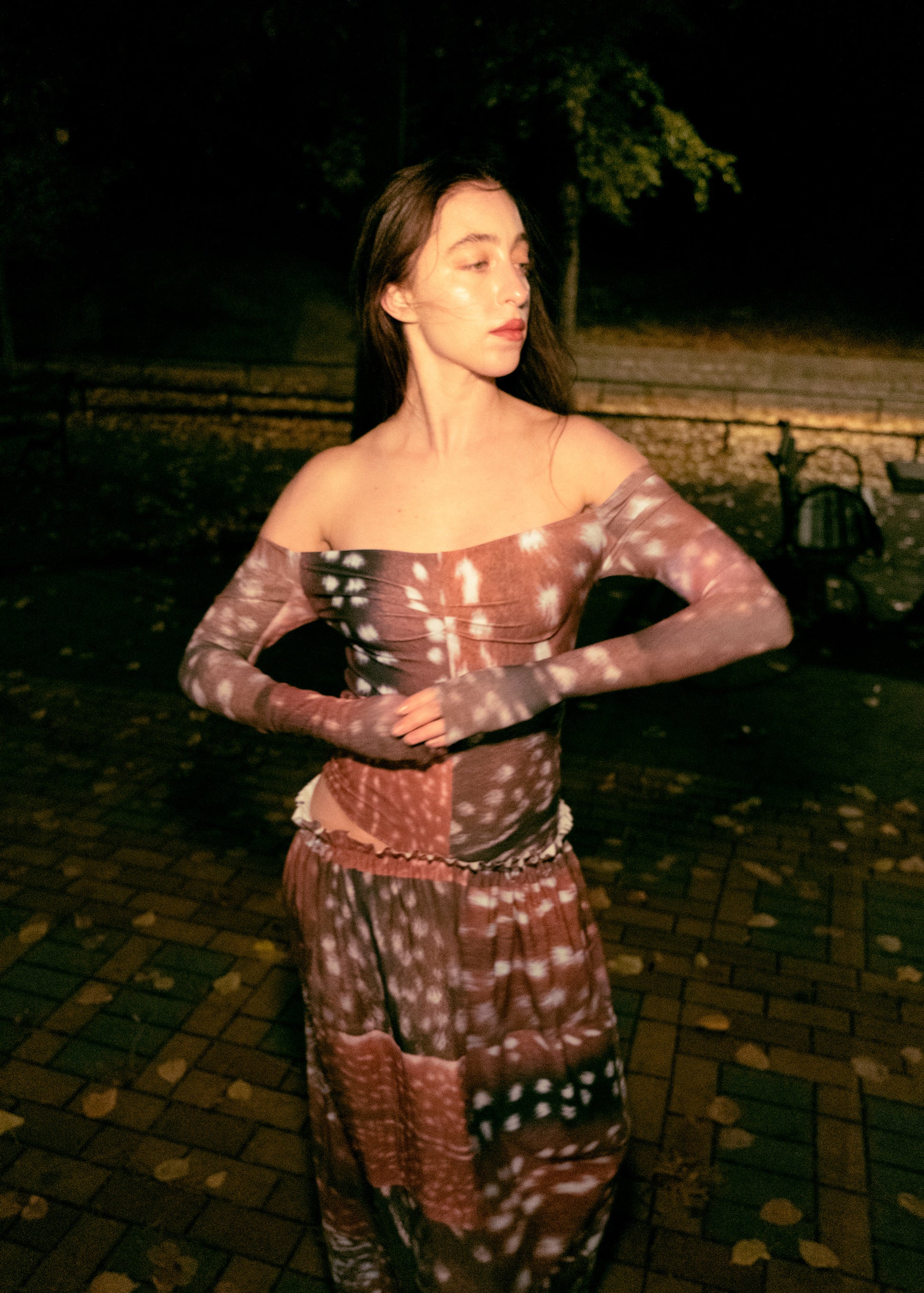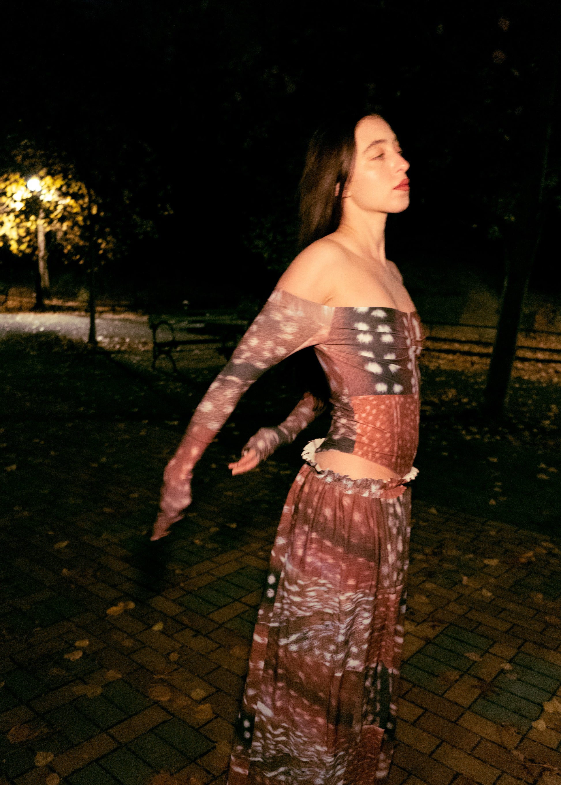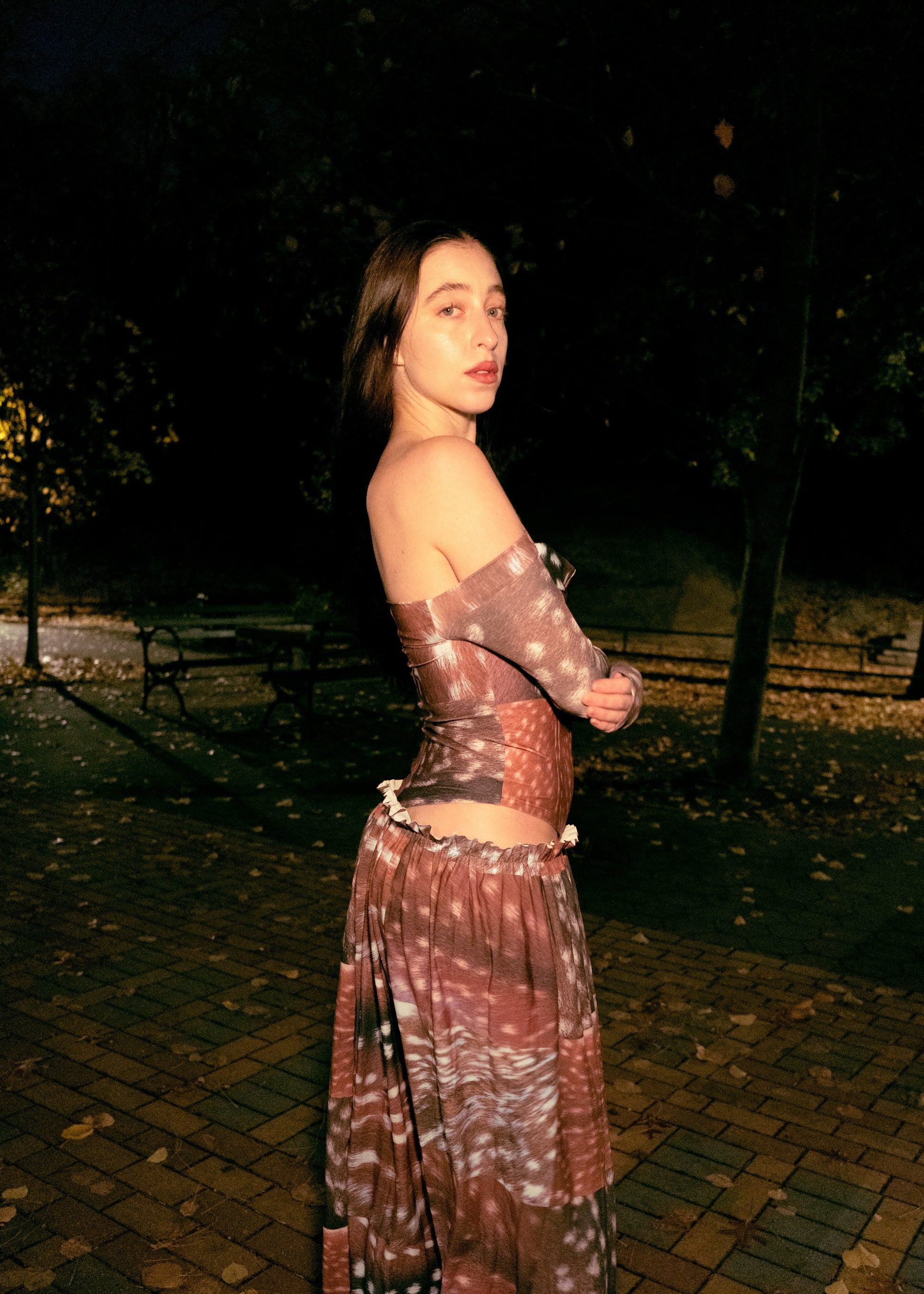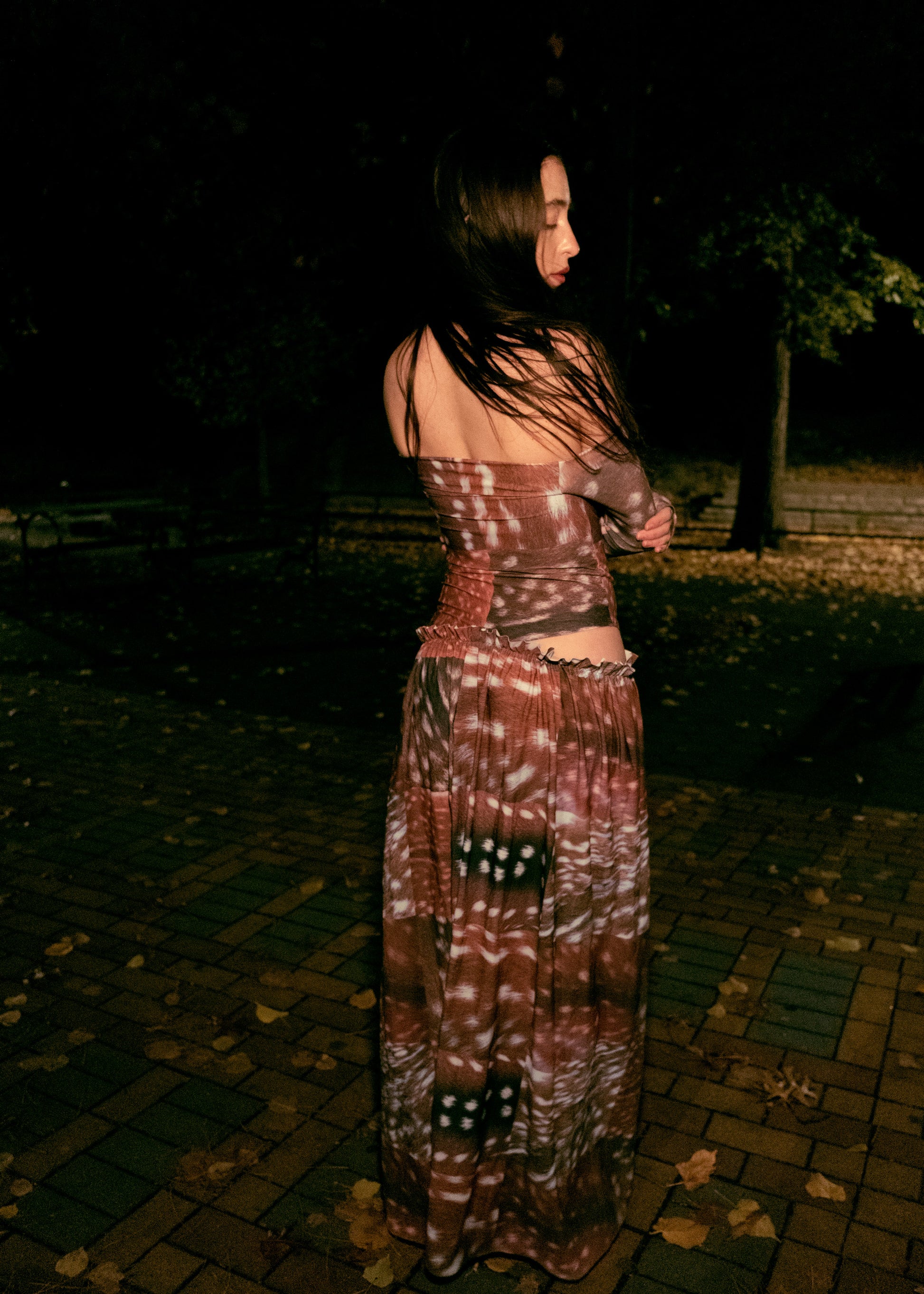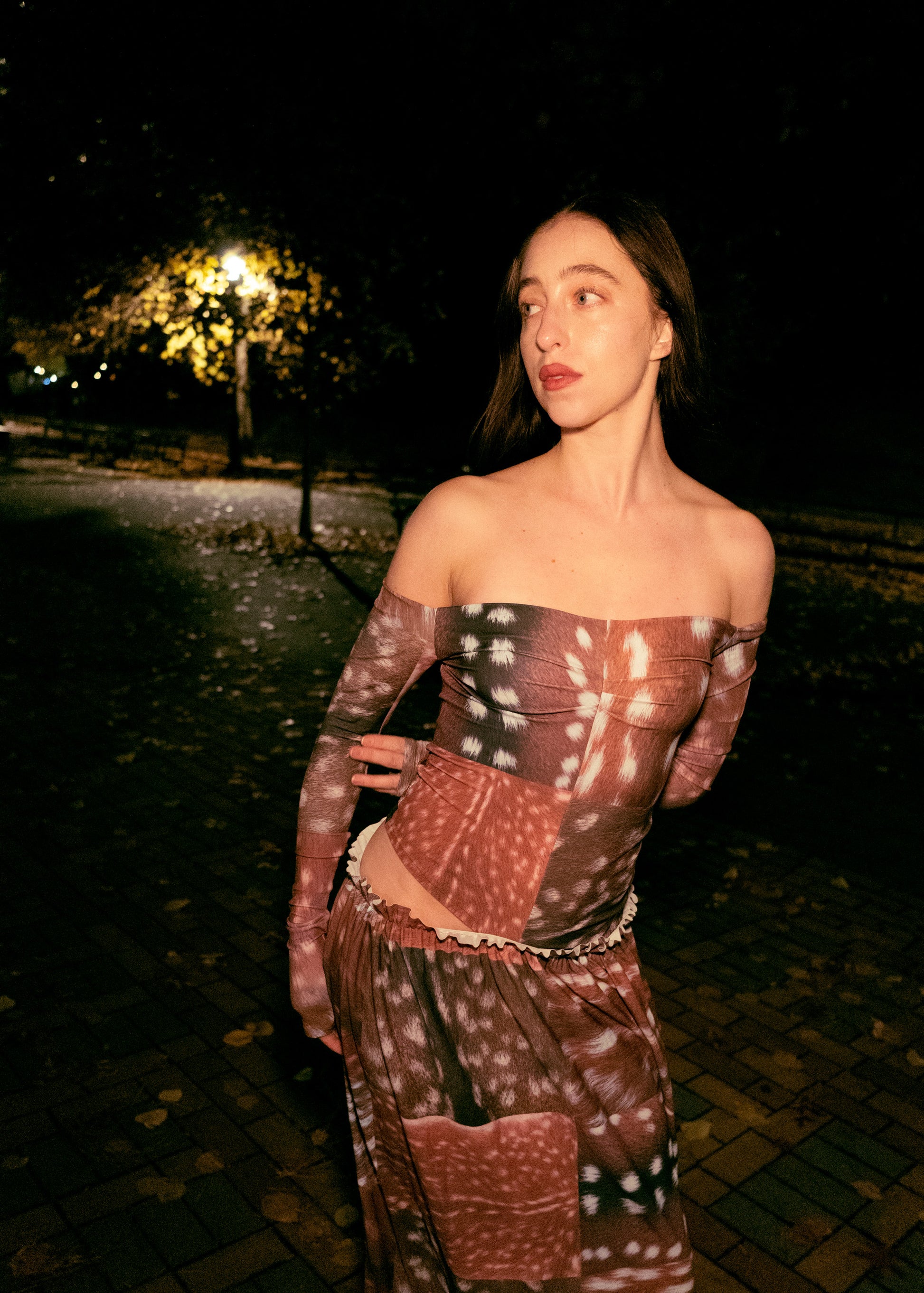 We print a whole roll of fabric and then cut every piece once the orders are placed to avoid creating waste. The pattern position may vary. No two dresses are exactly the same. 🦌