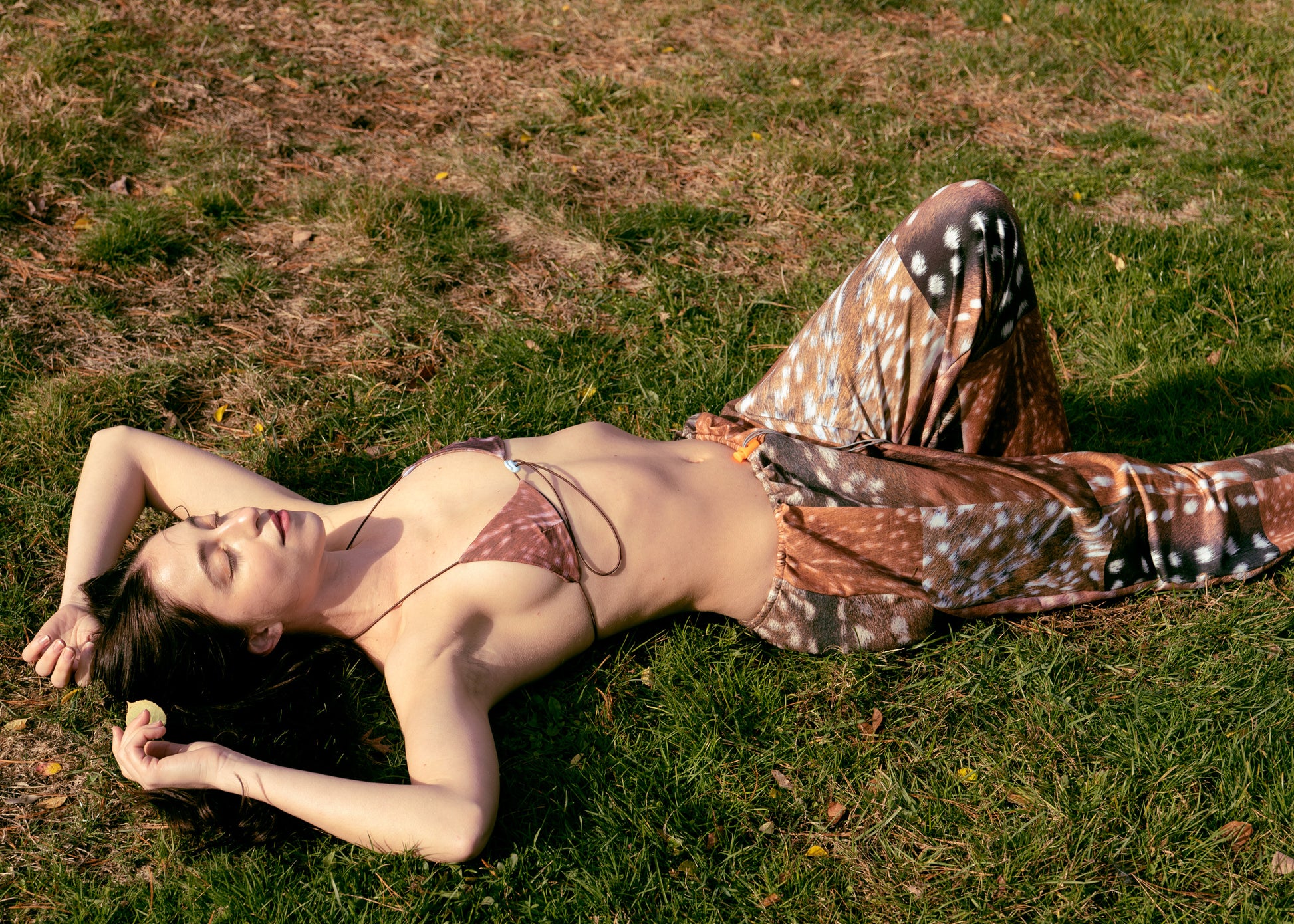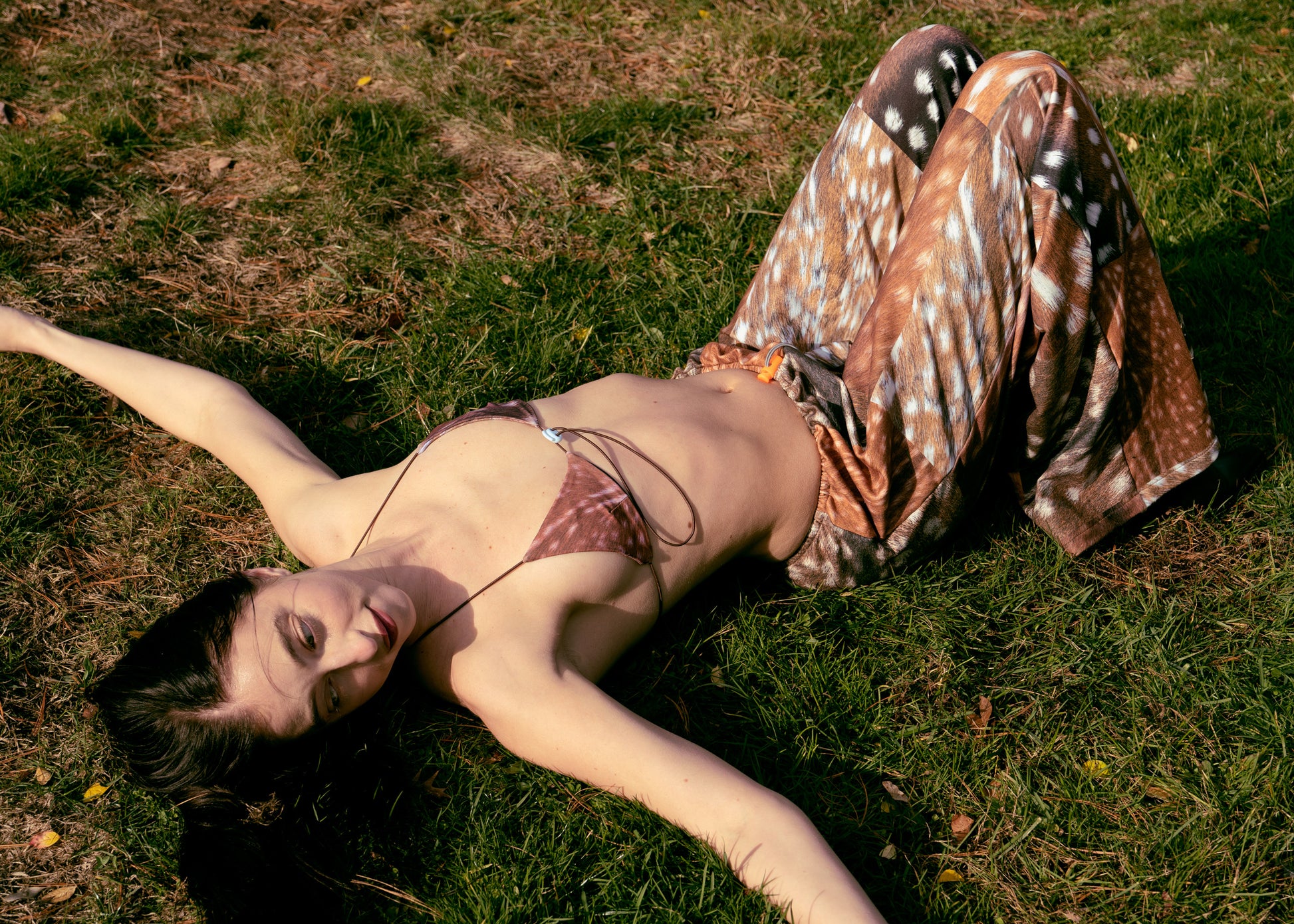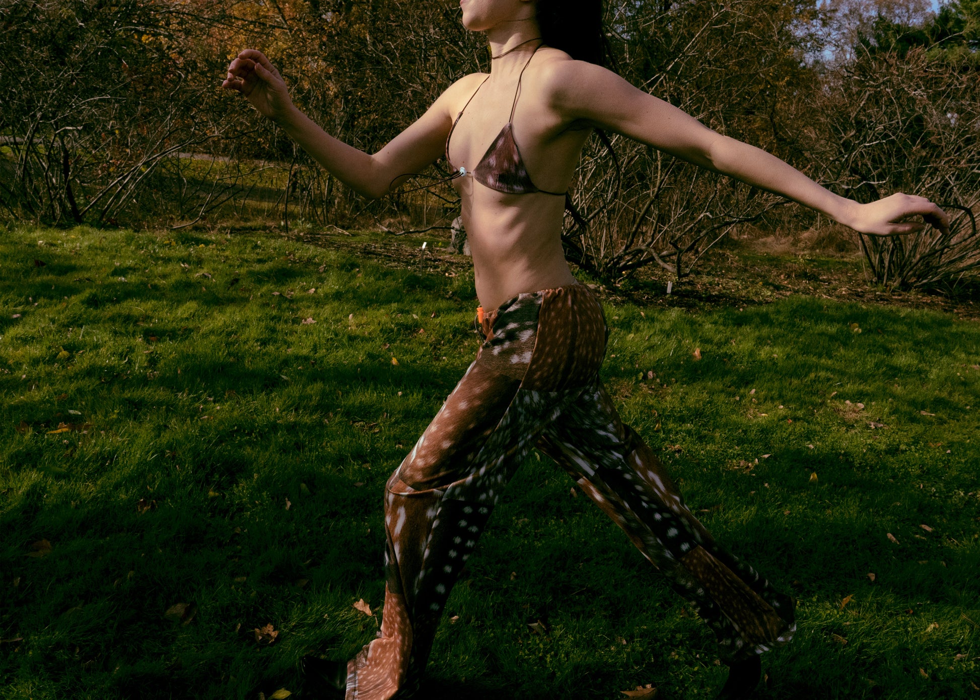We print a whole roll of fabric and then cut every piece once the orders are placed to avoid creating waste. The pattern position may vary. No two pairs of pants are exactly the same. 🦌
