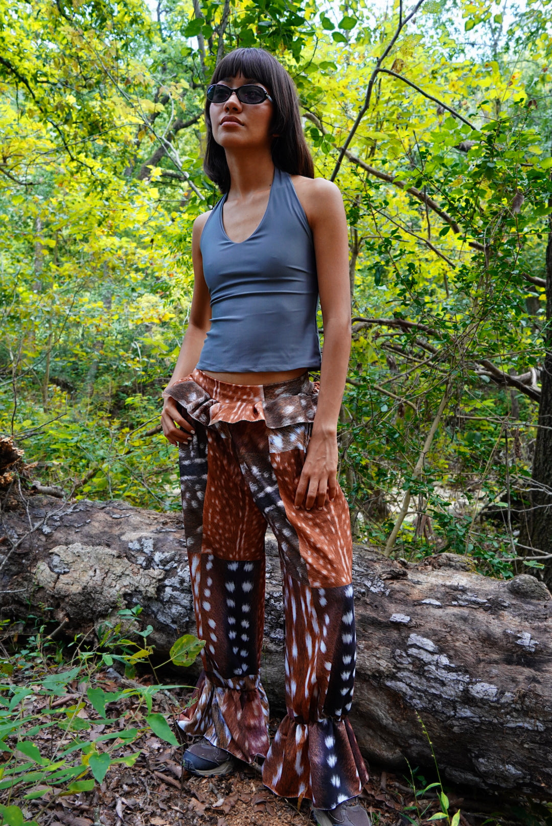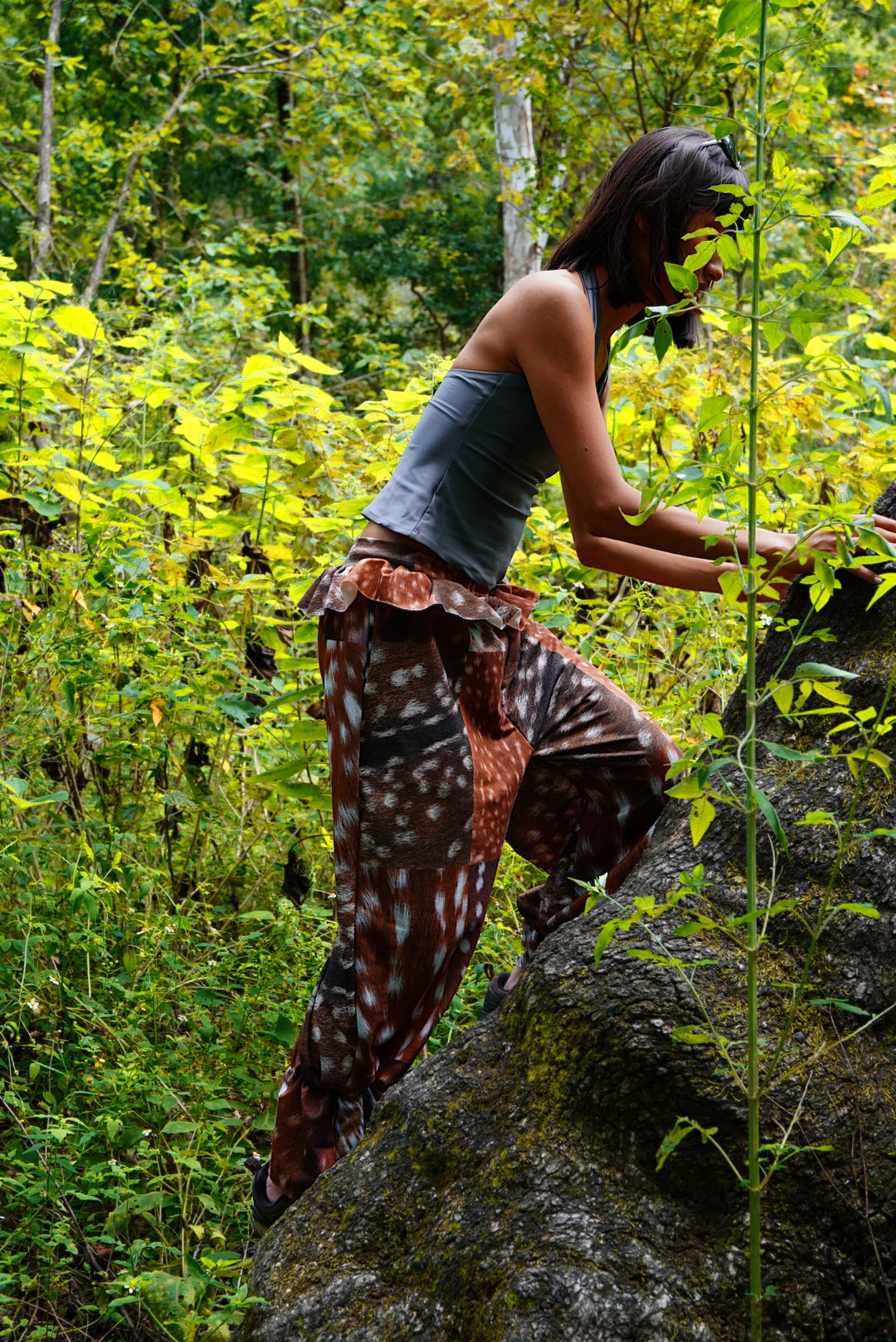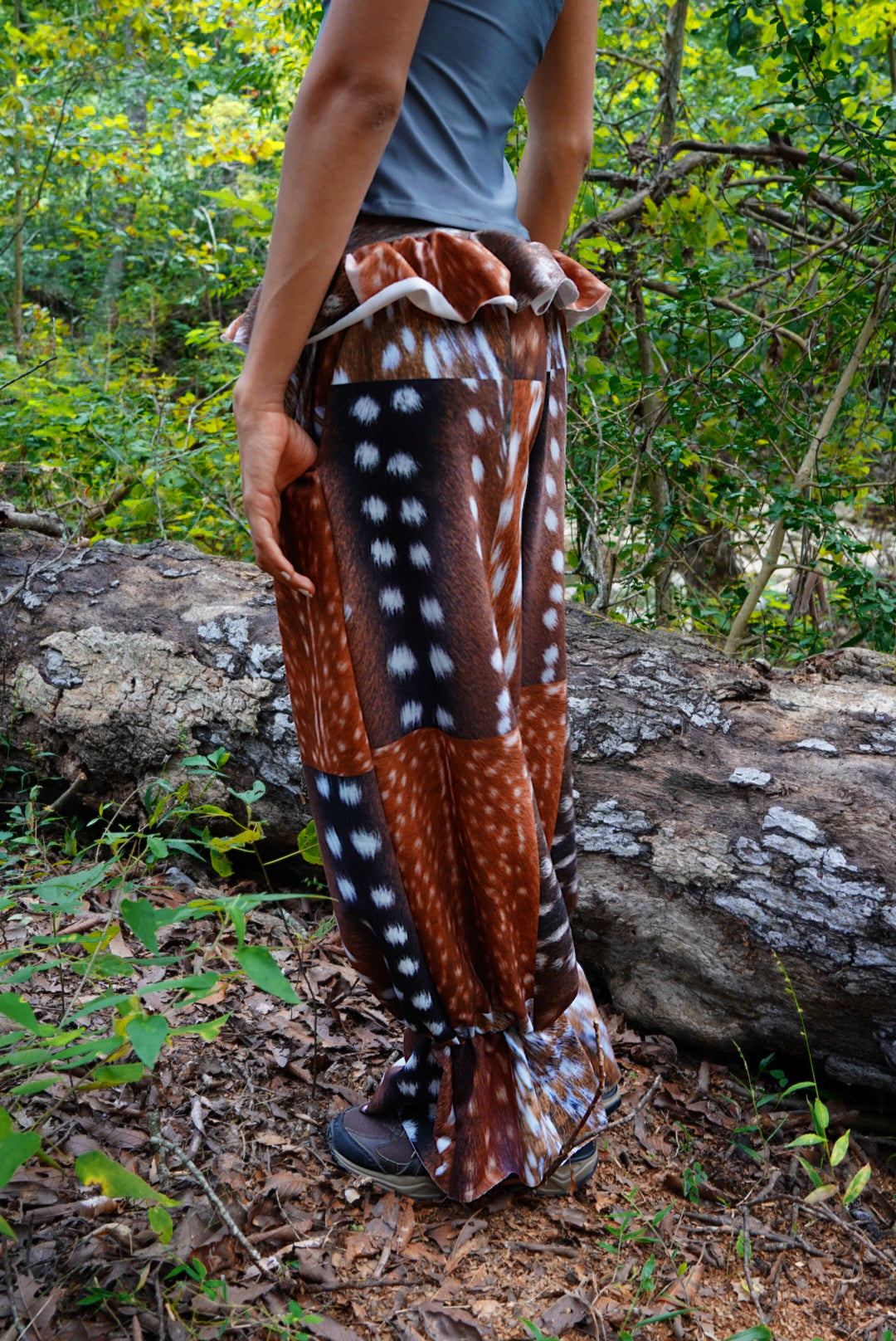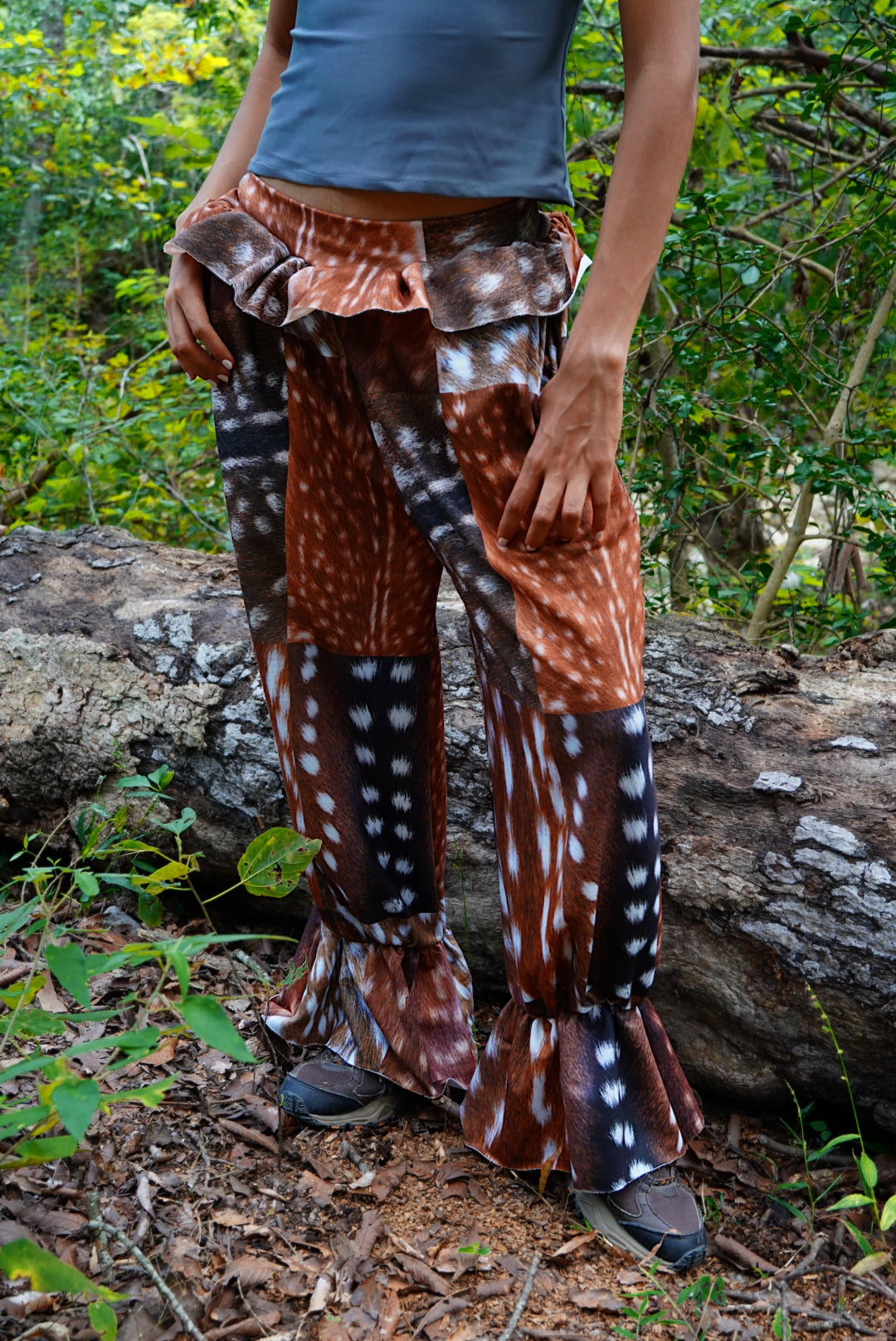 We print a whole roll of fabric and then cut every piece once the orders are placed to avoid creating waste. The pattern position may vary. No two pairs of pants are exactly the same. 🦌