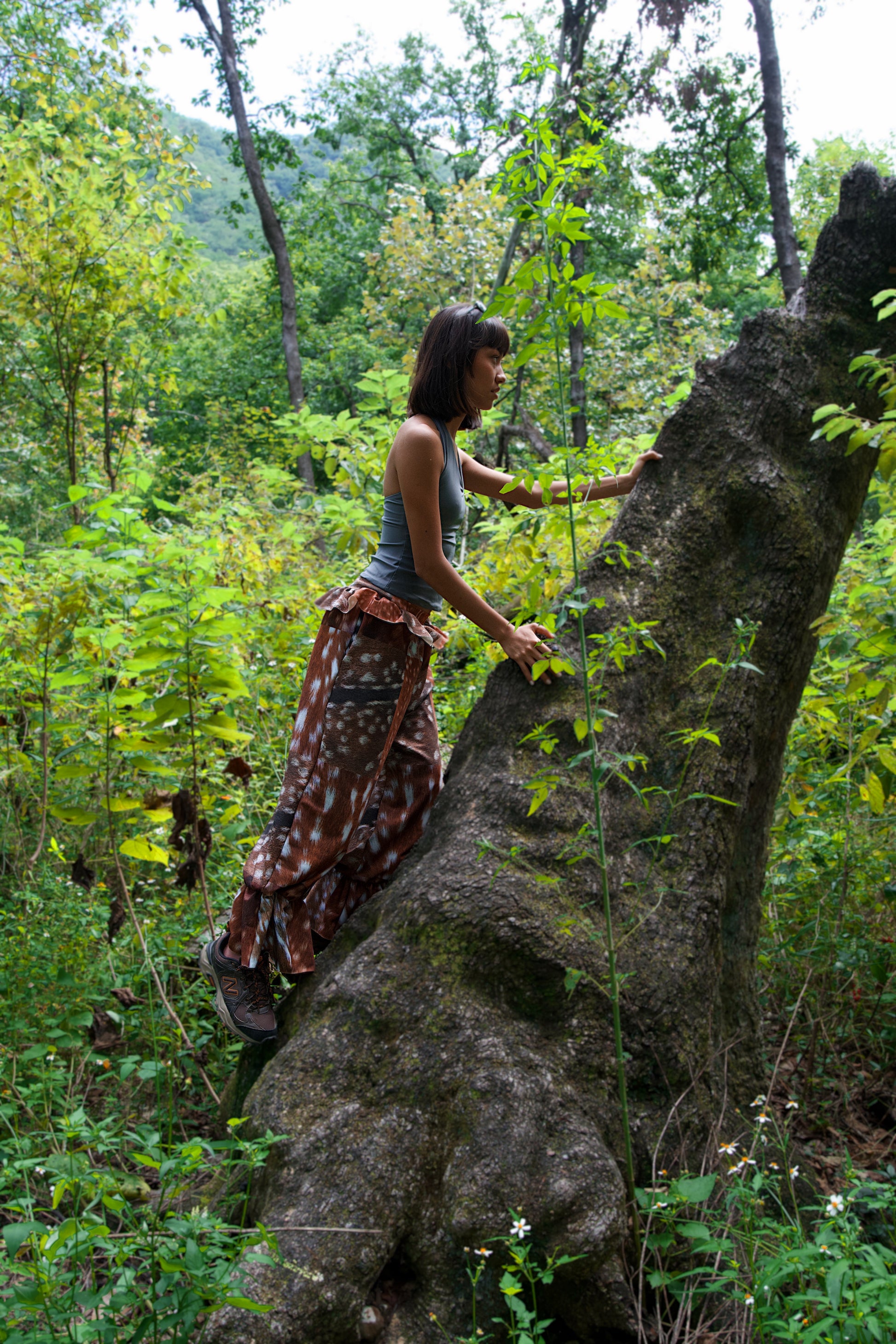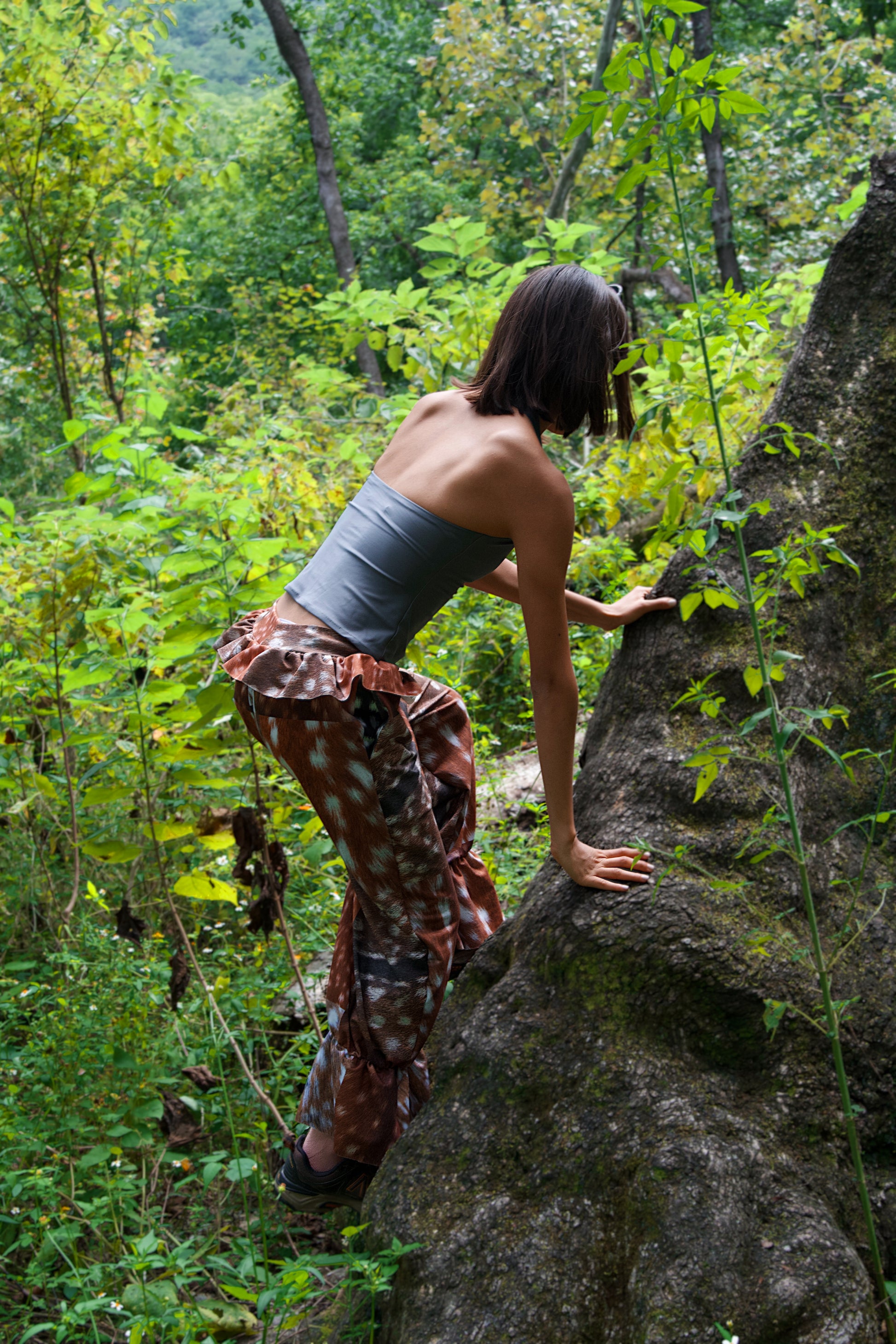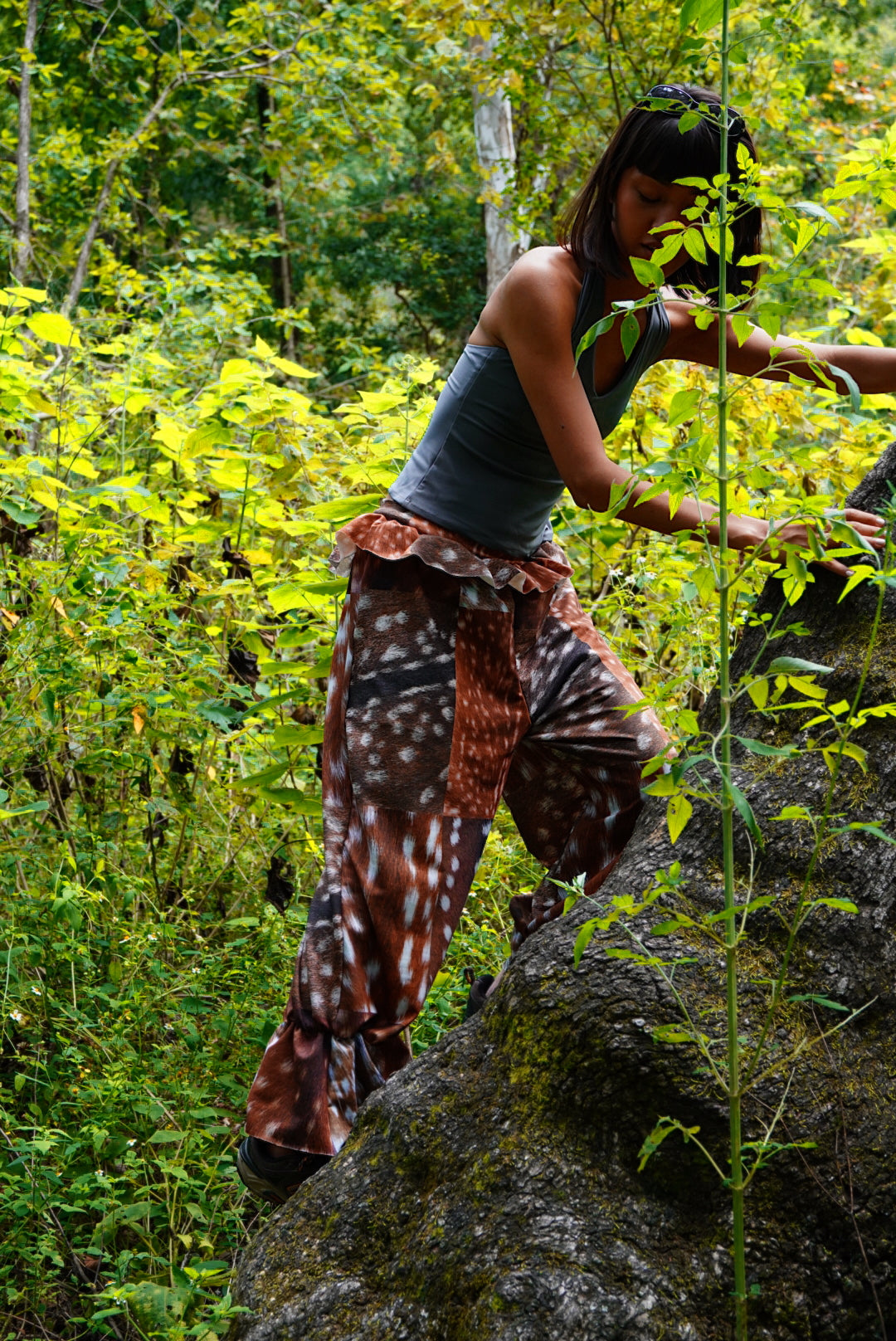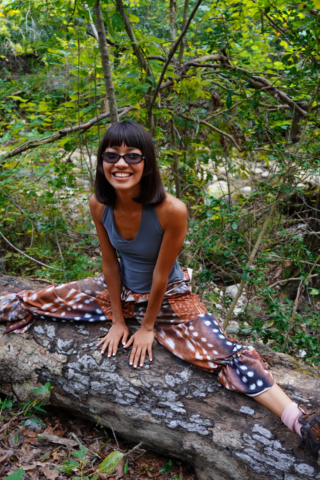 We print a whole roll of fabric and then cut every piece once the orders are placed to avoid creating waste. The pattern position may vary. No two pairs of pants are exactly the same. 🦌