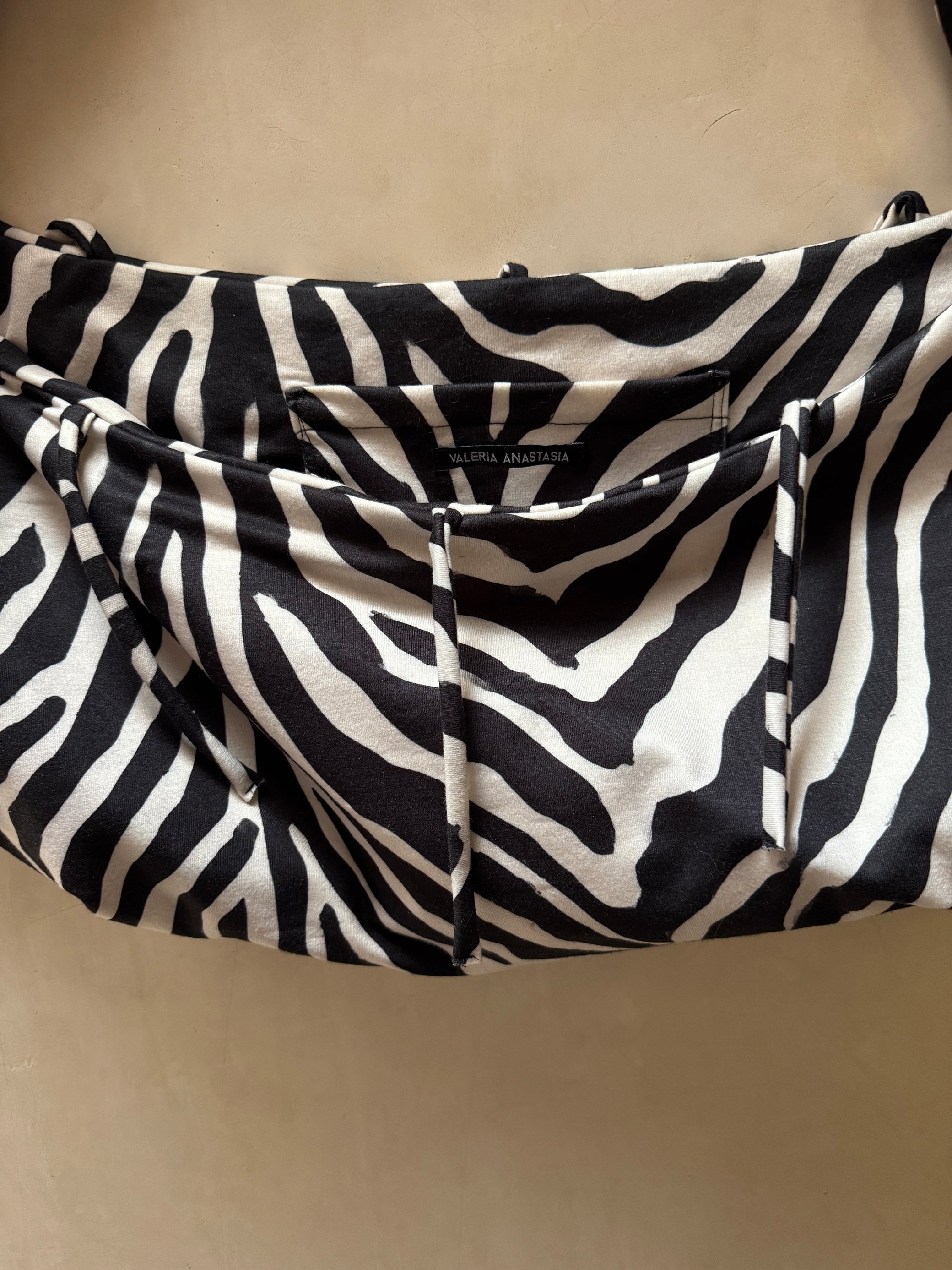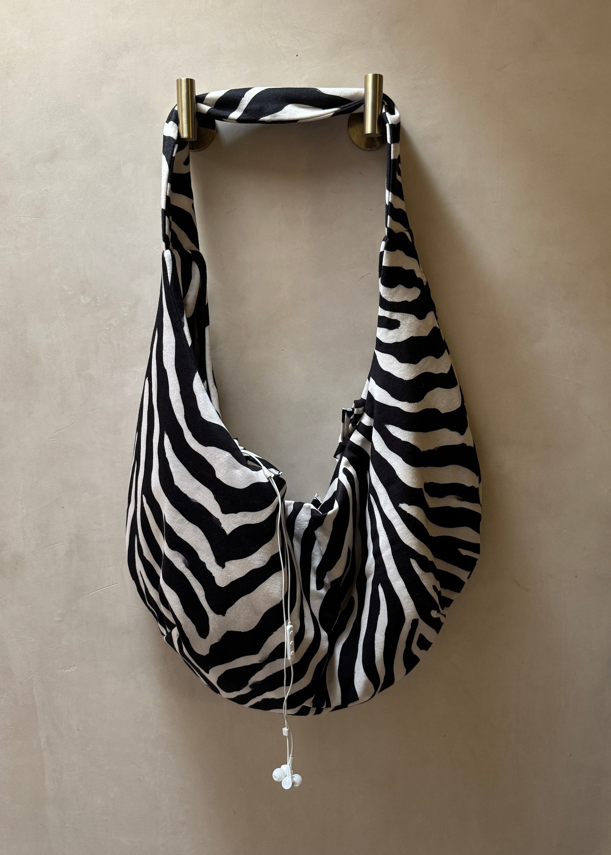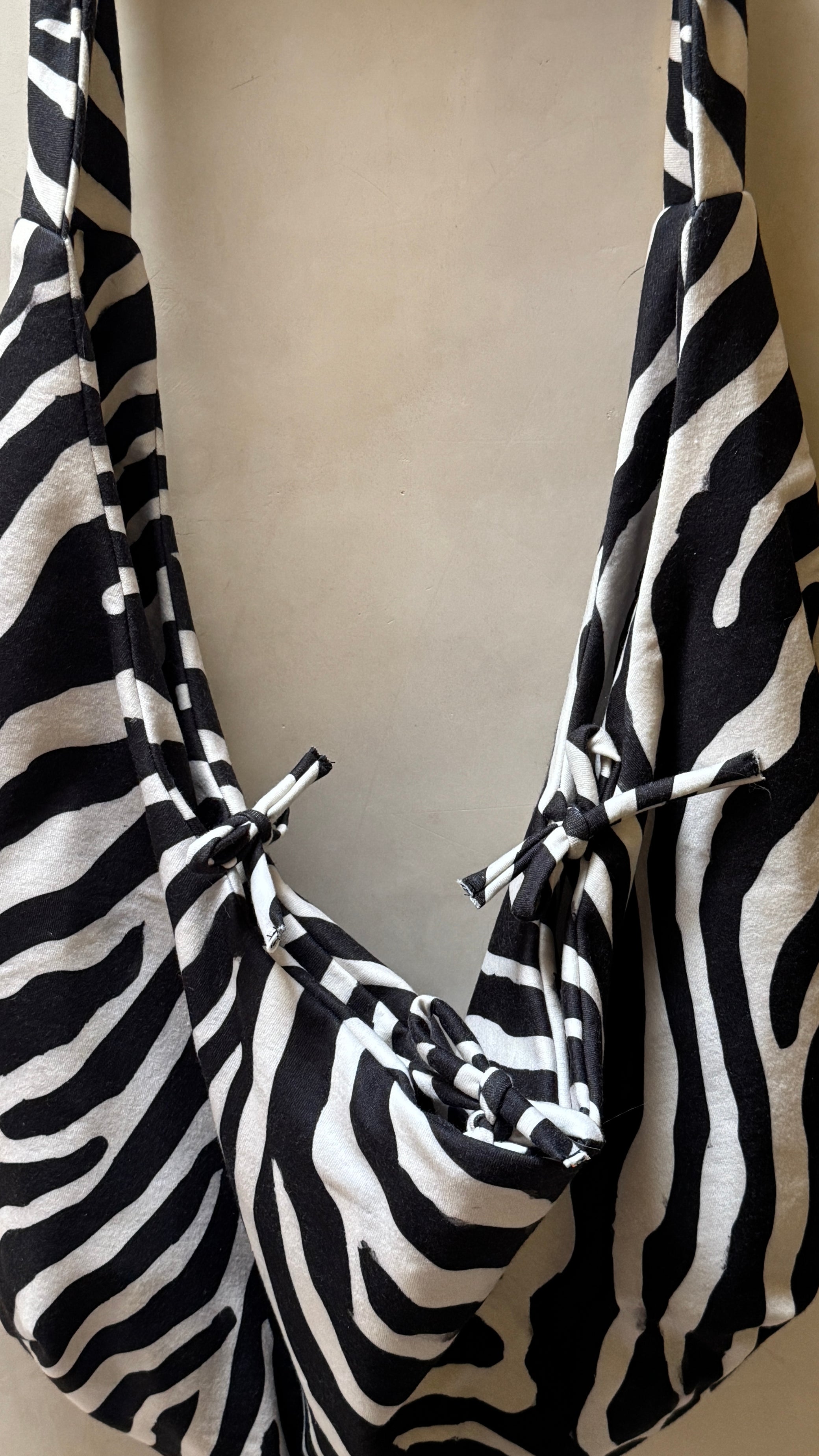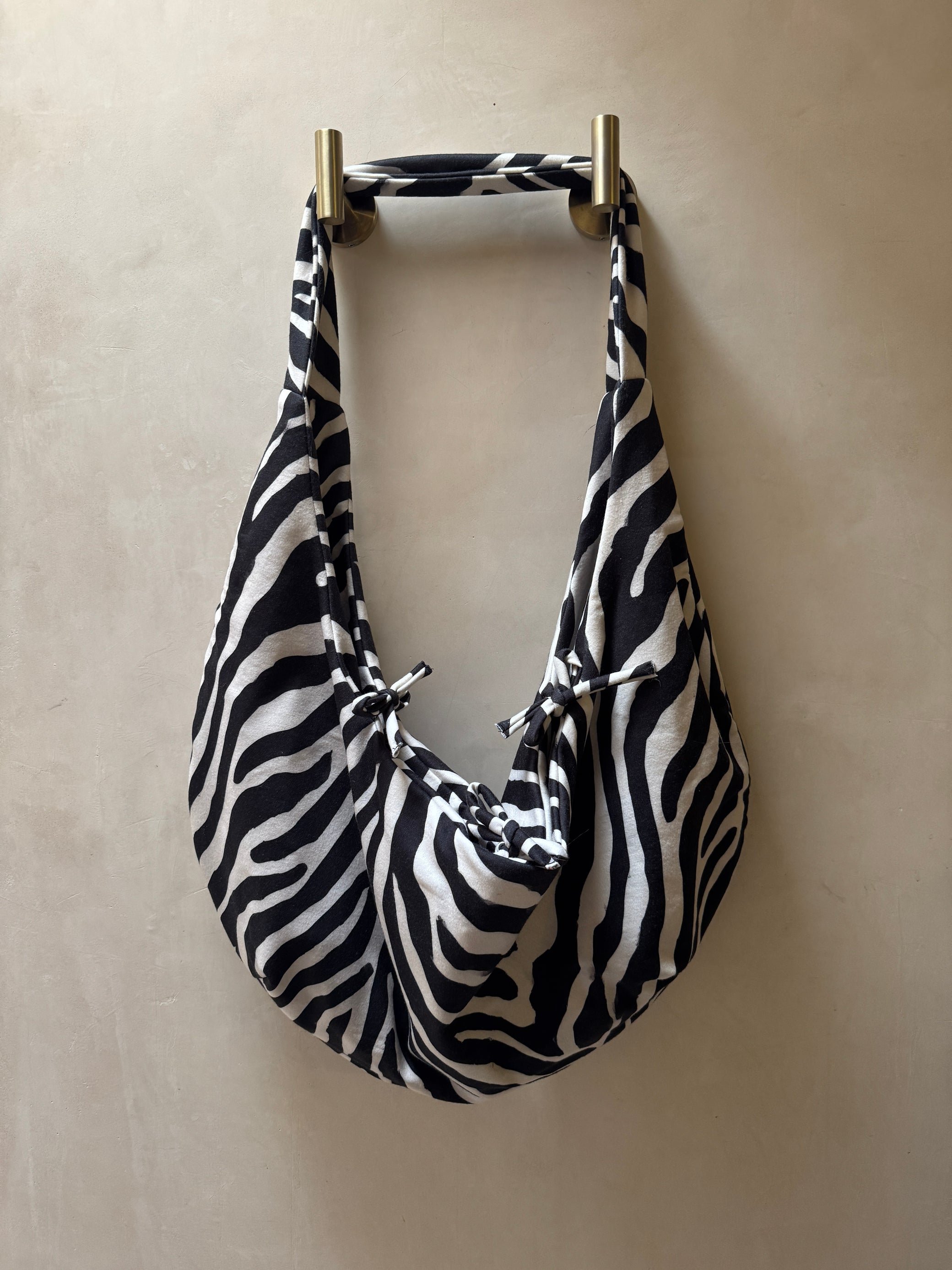 We print a whole roll of fabric and then cut every piece once the orders are placed to avoid creating waste. The pattern position may vary. No two bags are exactly the same.