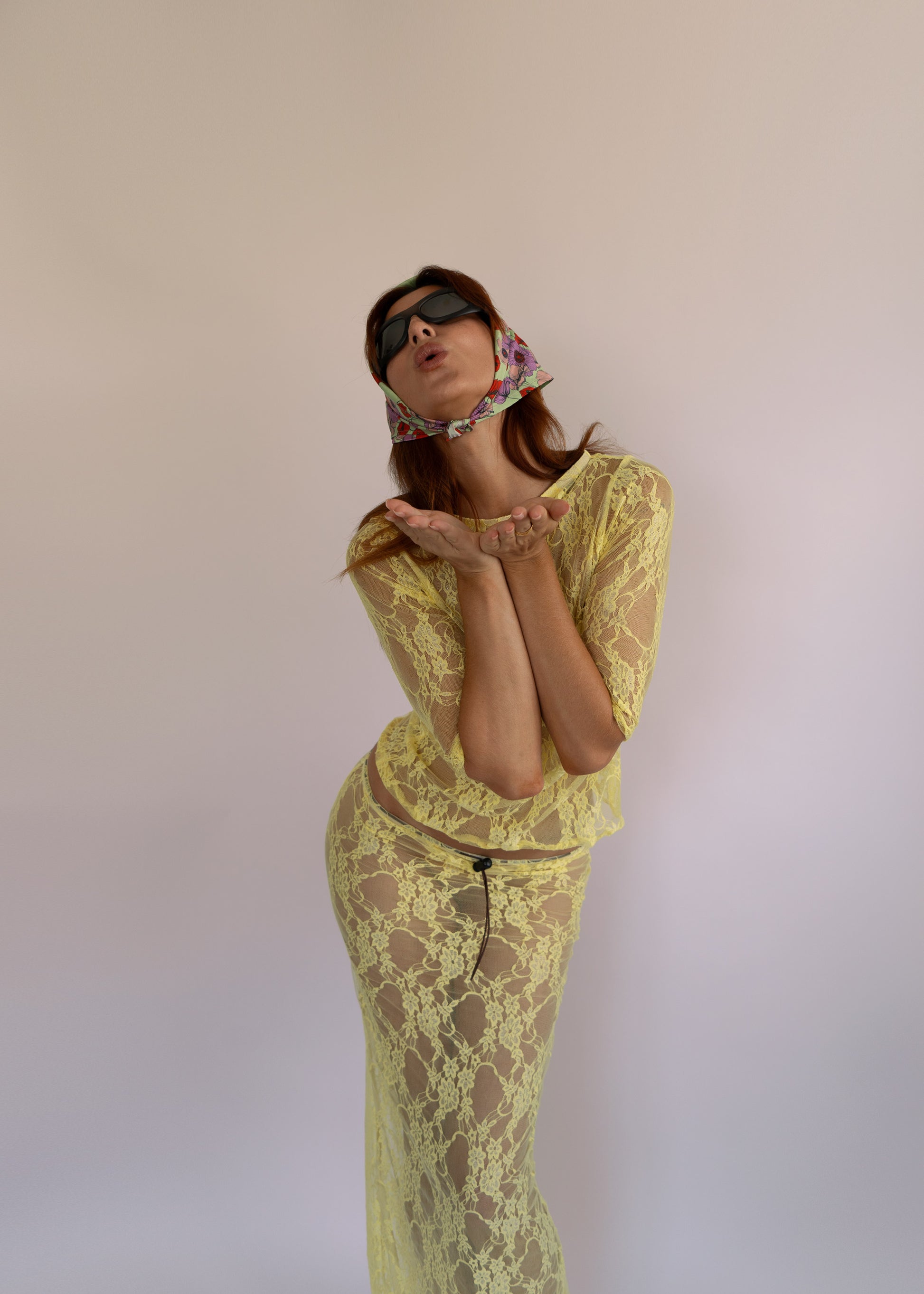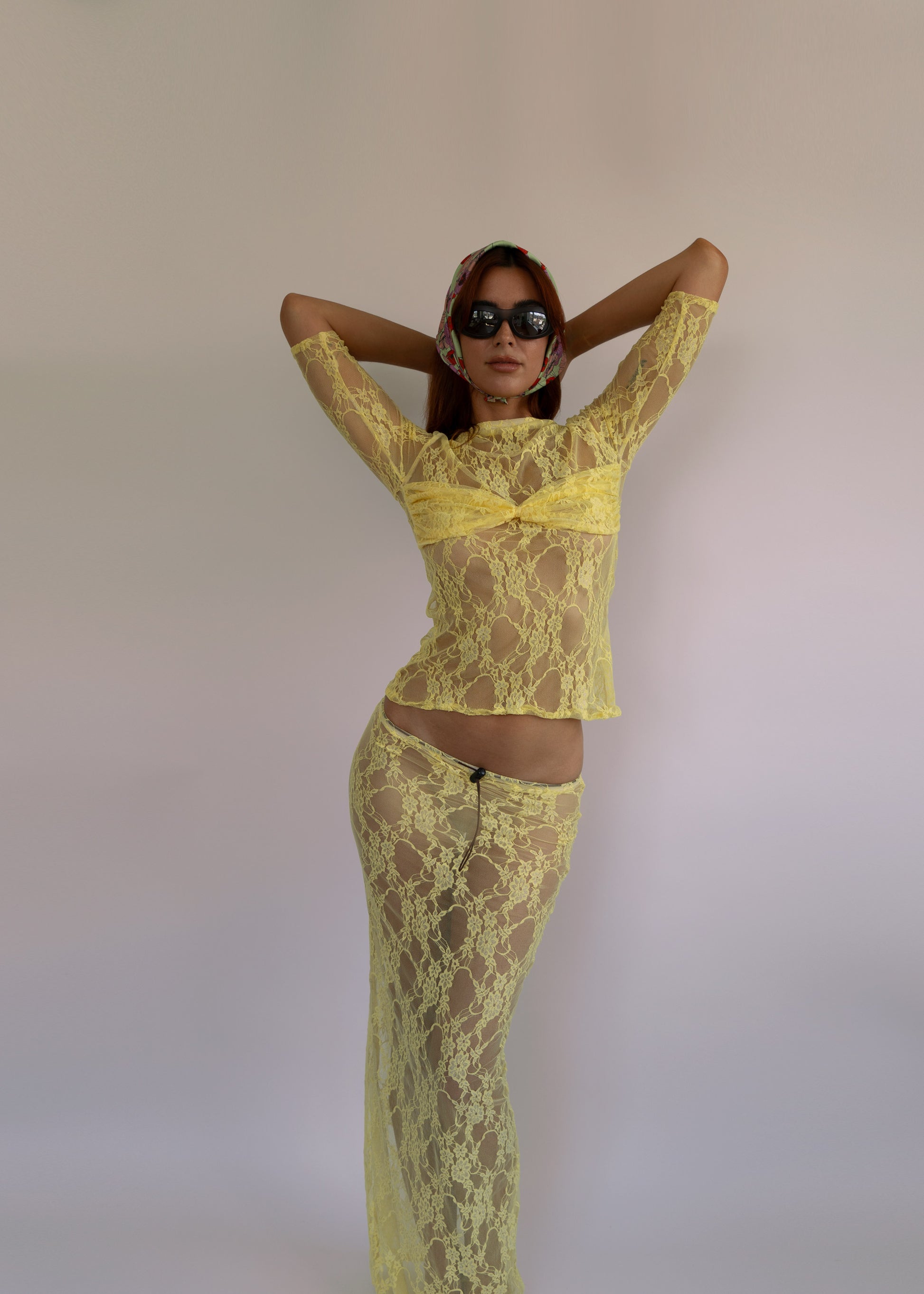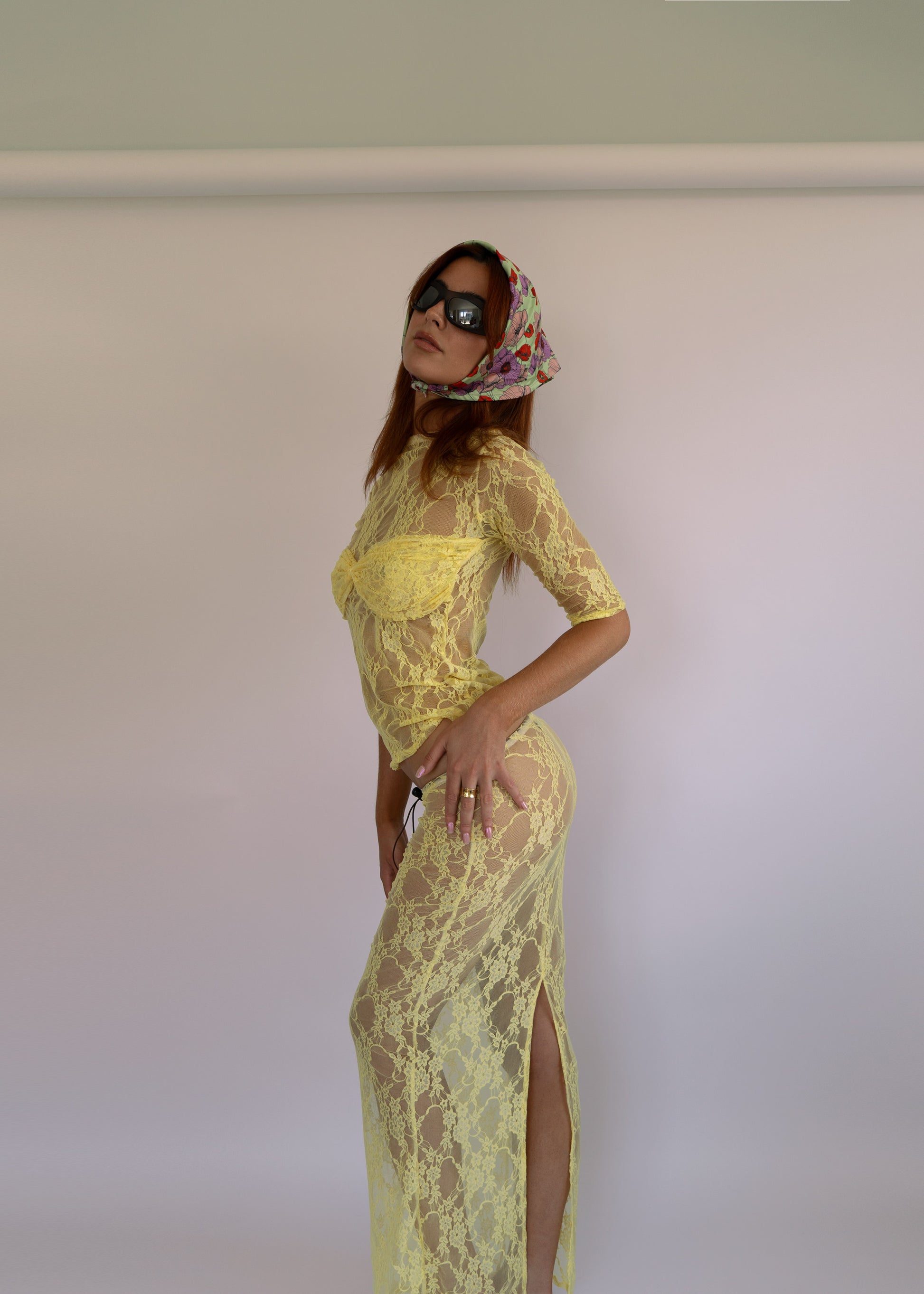 Floor length, adjustable lace skirt.