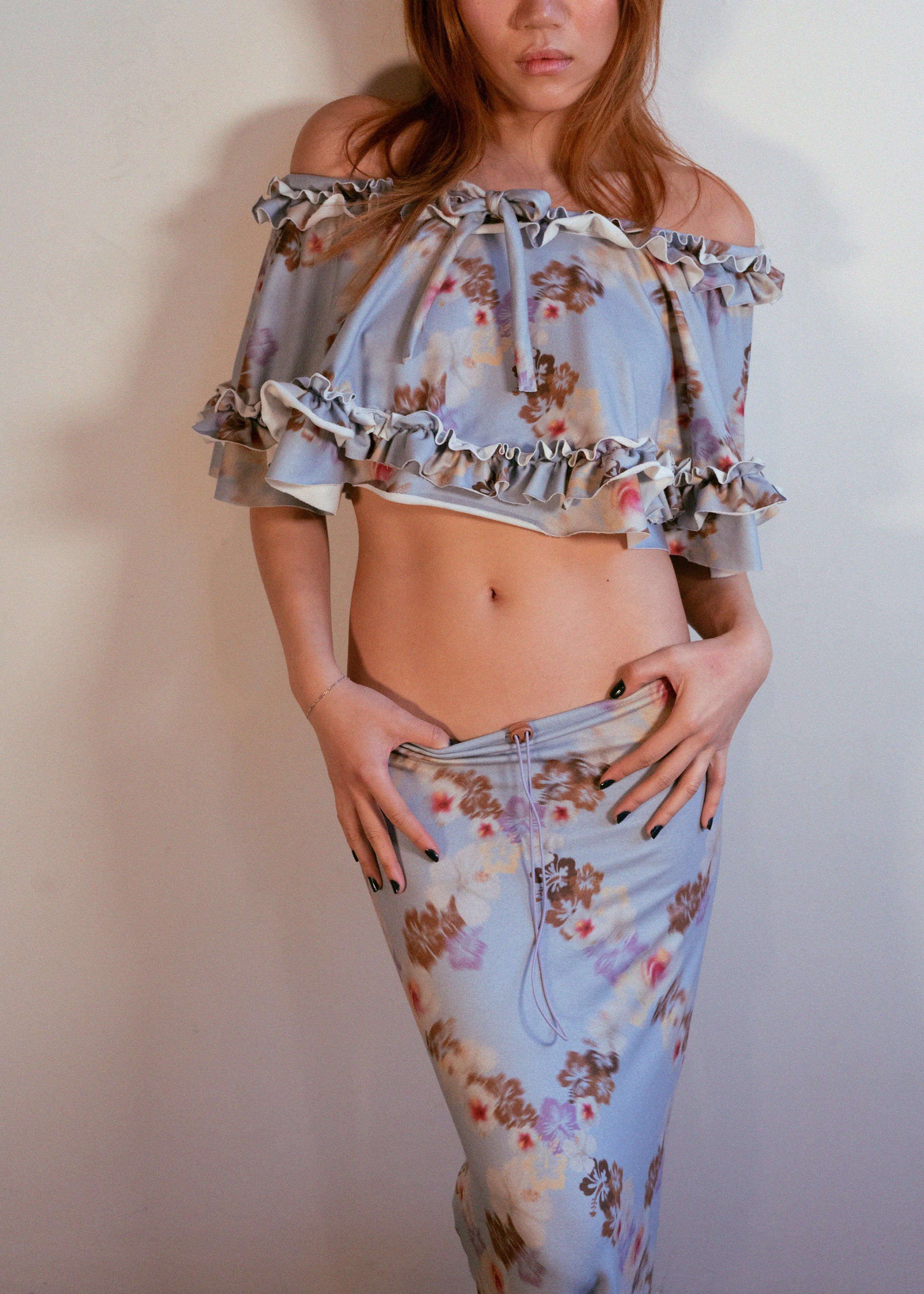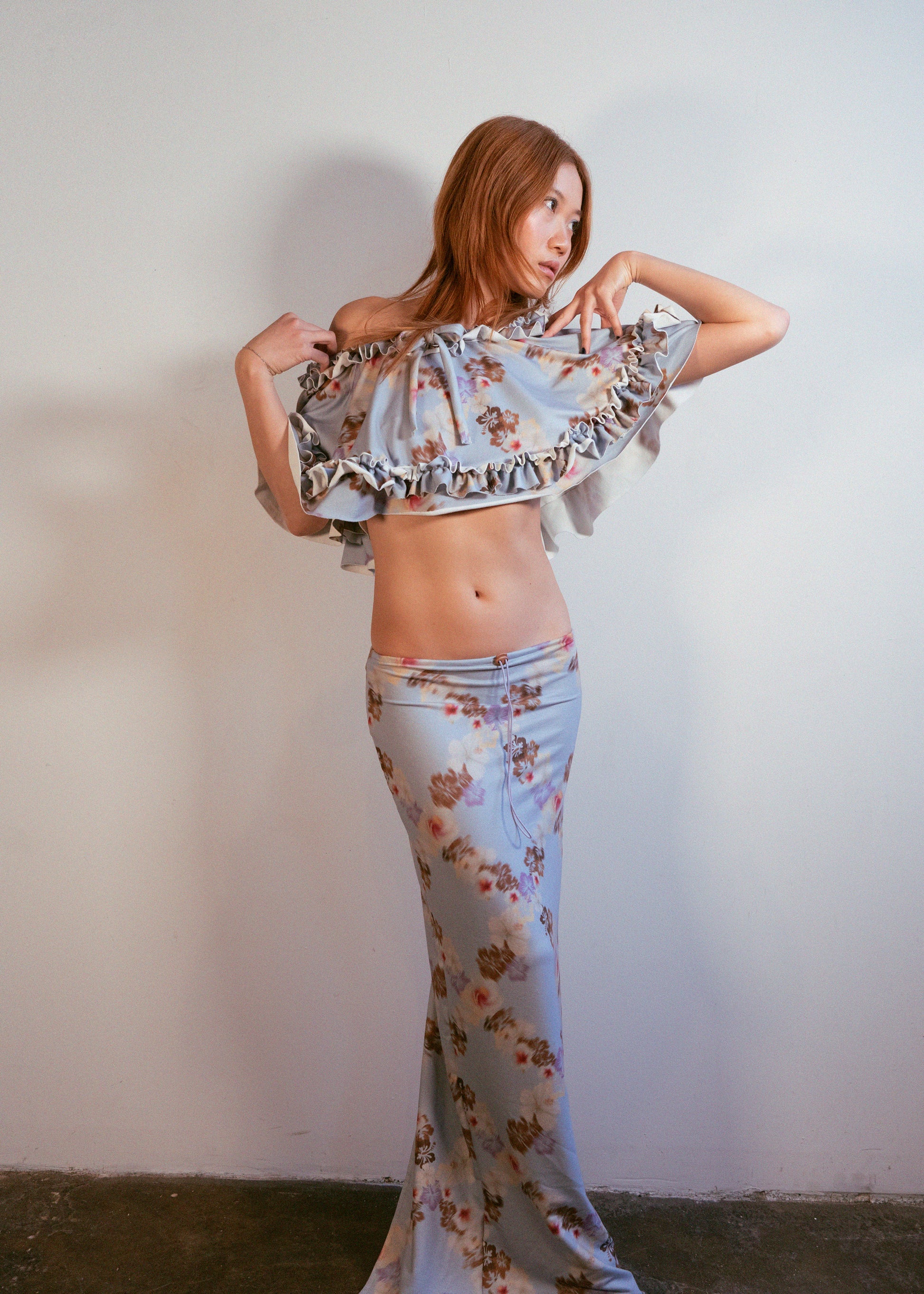 This item can be worn as a neck piece, top, low waisted skirt or at the waist to add hip volume. Often paired with the Tea Dress.